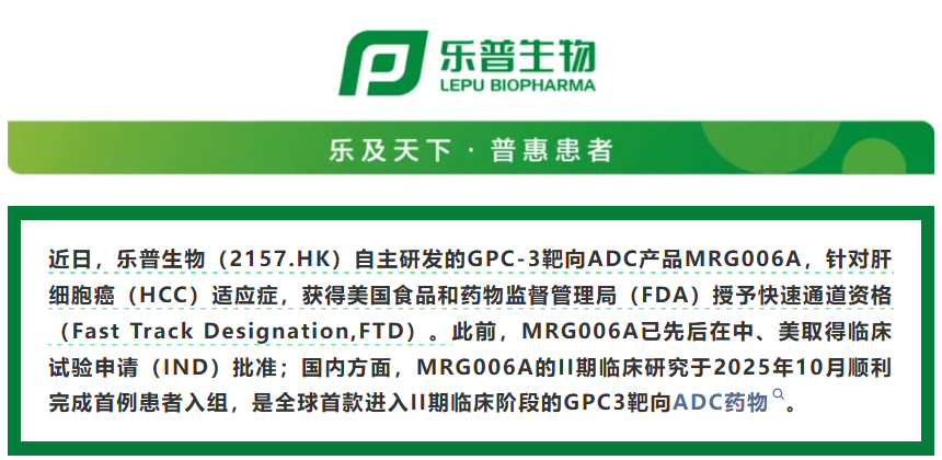 MRG006A是一种新型拓扑异构酶抑制剂GPC-3 ADC候选药物,具有全球首创潜力,是乐普生物的Hi-TOPi平台开发的成果。MRG006A于2024年7月获得国家药监局的IND批准。在临床前研究中,MRG006A在多种CDX模型及HCC PDX模型中展现出对肿瘤生长的强大抑制作用,同时在探索性毒理学研究中表现出良好的耐受性。相关临床前数据已在2024年4月的AACR年会上呈现。