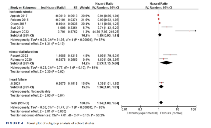 2. 部分亚组的样本量有限:例如,关于急性冠脉综合征和心力衰竭的亚组,纳入的研究数量较少,其结论的稳定性有待更多研究来证实。